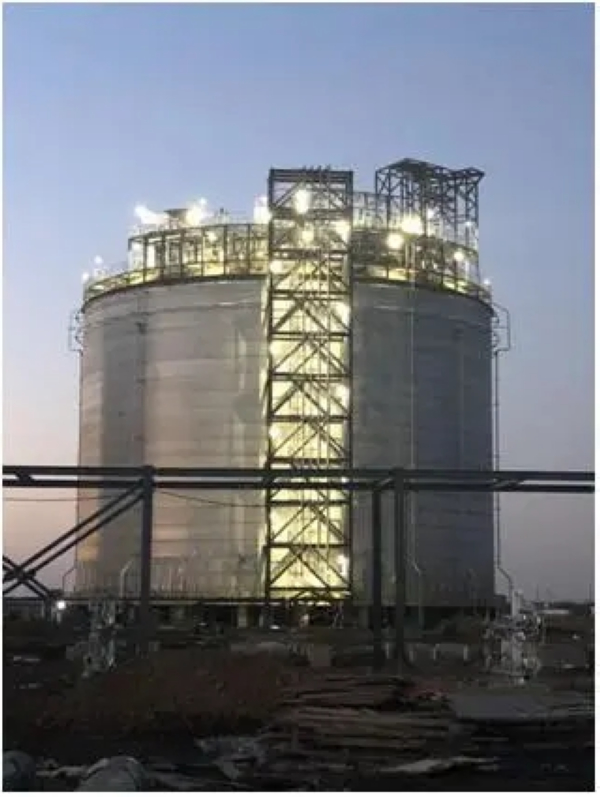 山西長子項(xiàng)目2臺(tái)3萬立方LNG 全容罐現(xiàn)場(chǎng)施工完成