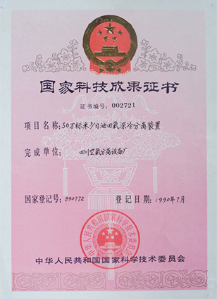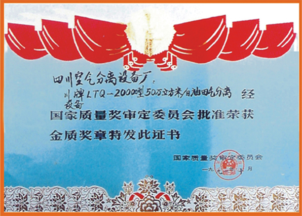 由川空集團(tuán)公司開(kāi)發(fā)的50×104Nm3/d油田氣分離成套設(shè)備曾獲國(guó)家科技成果二等獎(jiǎng)及國(guó)家質(zhì)量金獎(jiǎng)。